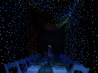 We offer twinkle light canopy rentals in custom sizes and lengths, and with the ability to connect them together you can use these glowing lights in rooms of all sizes. Dine and dance beneath the perfect ambiance with twinkle light canopy rentals. If you are looking for another way to jazz up your event, we offer twinkle light balloons.